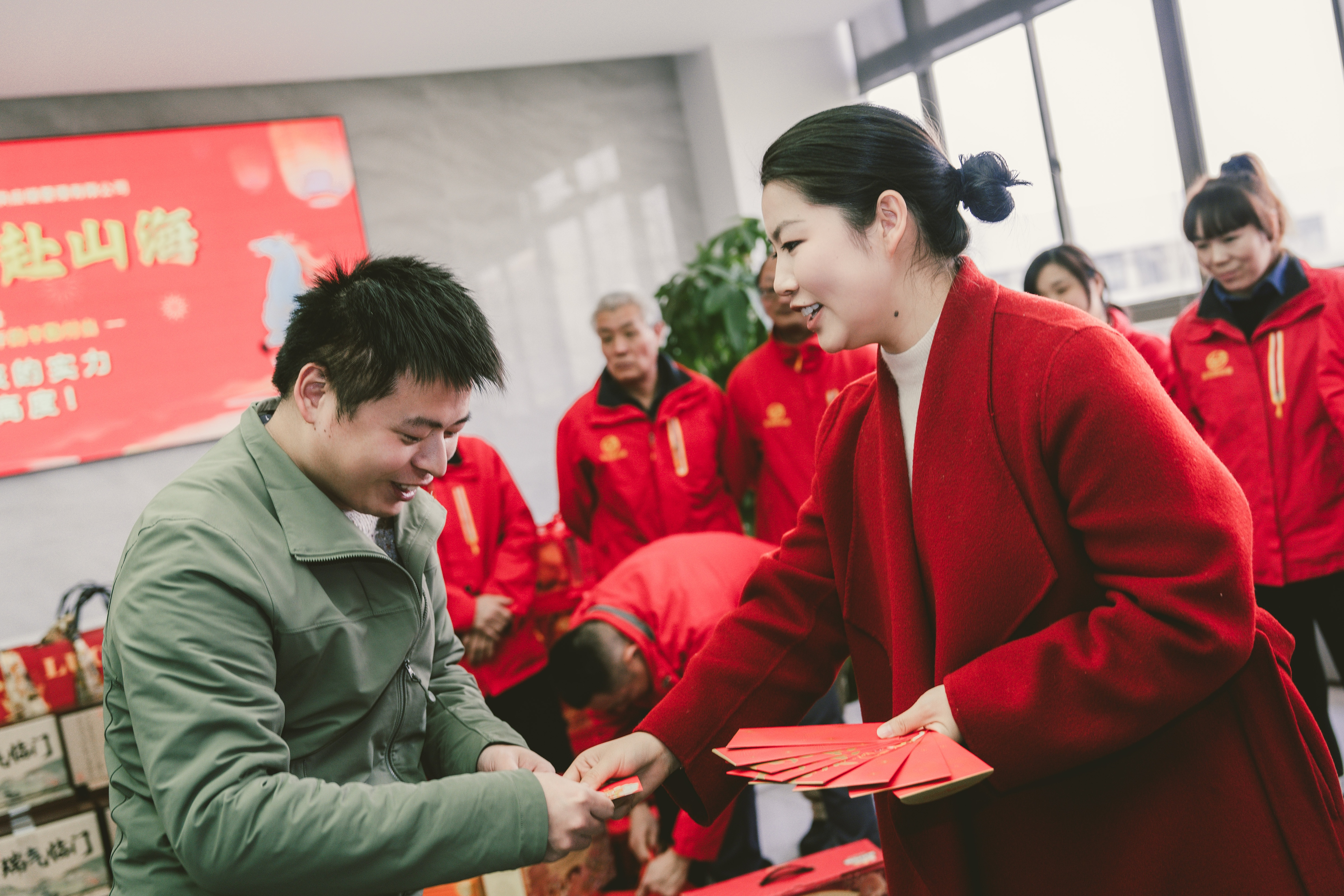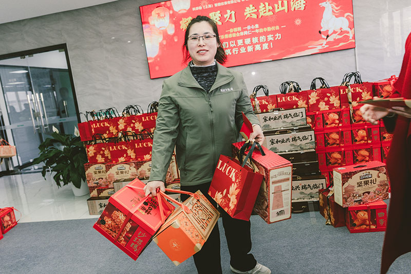 The annual meeting was filled with a strong festive atmosphere, and the company prepared generous New Year benefits for all employees. Three Squirrel Nut Gift Boxes, Customized New Year Gift Packages, and other New Year gifts are neatly displayed, full of the company's care and blessings for employees. Amidst the warm applause, the leader personally presented the employees with Chinese New Year red envelopes, with joyful smiles filling the entire venue with the warmth of home.