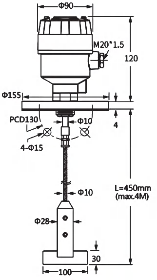 Petrochemical industry: used to measure the liquid or granular material level in containers, commonly used in storage tanks, reaction vessels, pharmaceutical equipment, etc;
