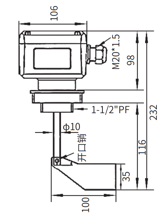 1. When installing horizontally, it is recommended to install the switch at a horizontal downward angle of 15 ℃ to 20 ℃ to reduce material impact.