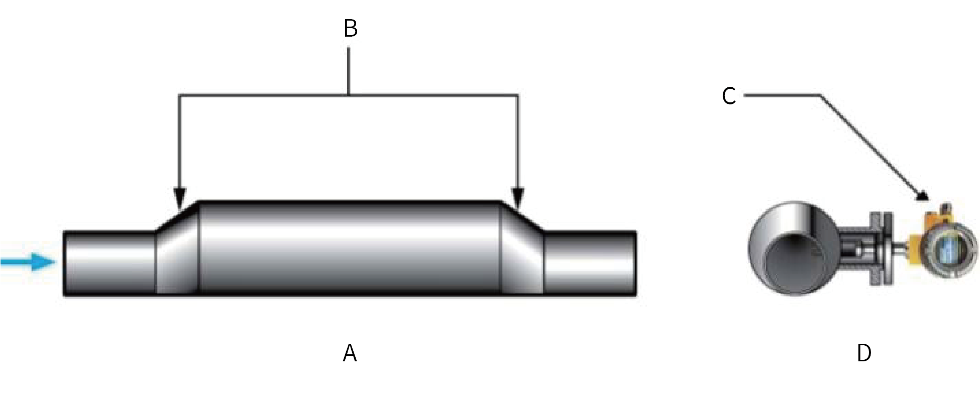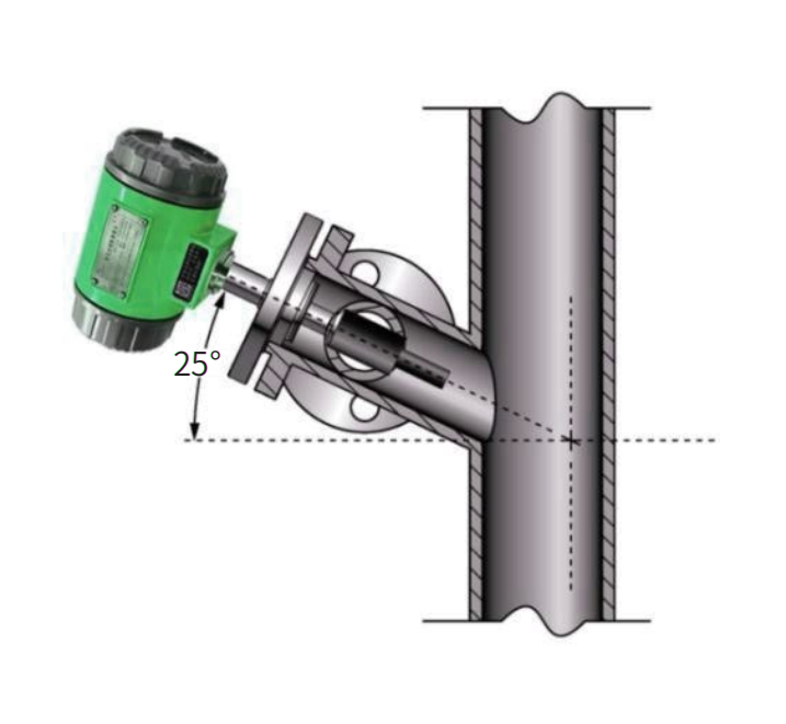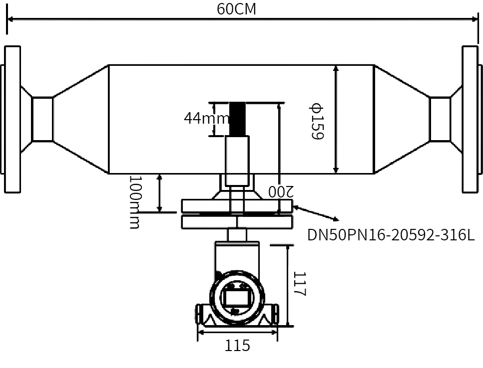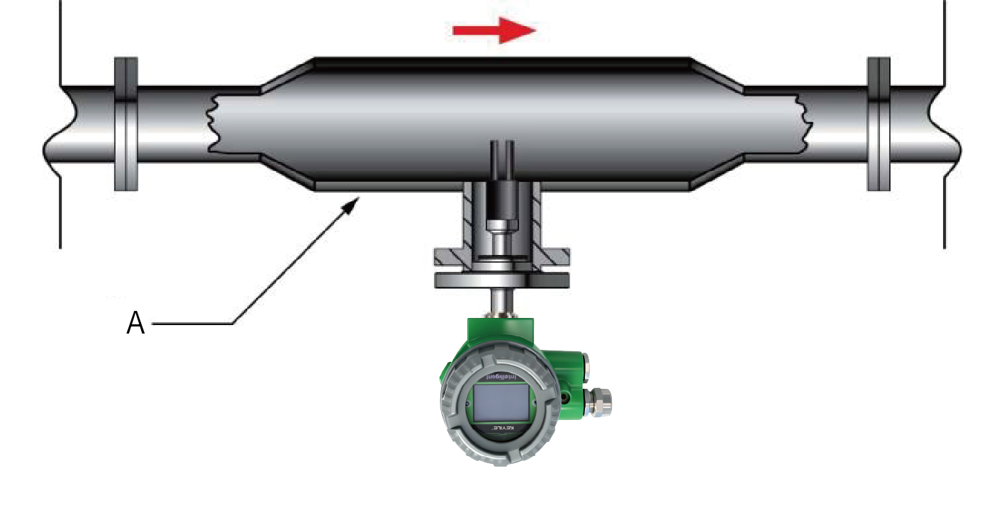 | In order to ensure that the density meter can measure accurately and display stably, the flow rate of the measured medium shall not be greater than 1m/s, and the diameter of the pipe where the density meter is installed shall be greater than or equal to 159mm. The location where the density meter is installed should be as far away from the pump as possible, and the distance should preferably be greater than 5m; when the flow rate is greater than 1m/s, the expansion installation is adopted. For every increase of 1m in the flow rate, the diameter of the pipe where the density meter is installed is expanded by 1.5 times. There must be a straight pipe section of ≥600mm in front of the meter and a straight pipe section of ≥300mm behind the meter to ensure that the fluid is in a laminar state when flowing through the fork body. As shown in the figure: |