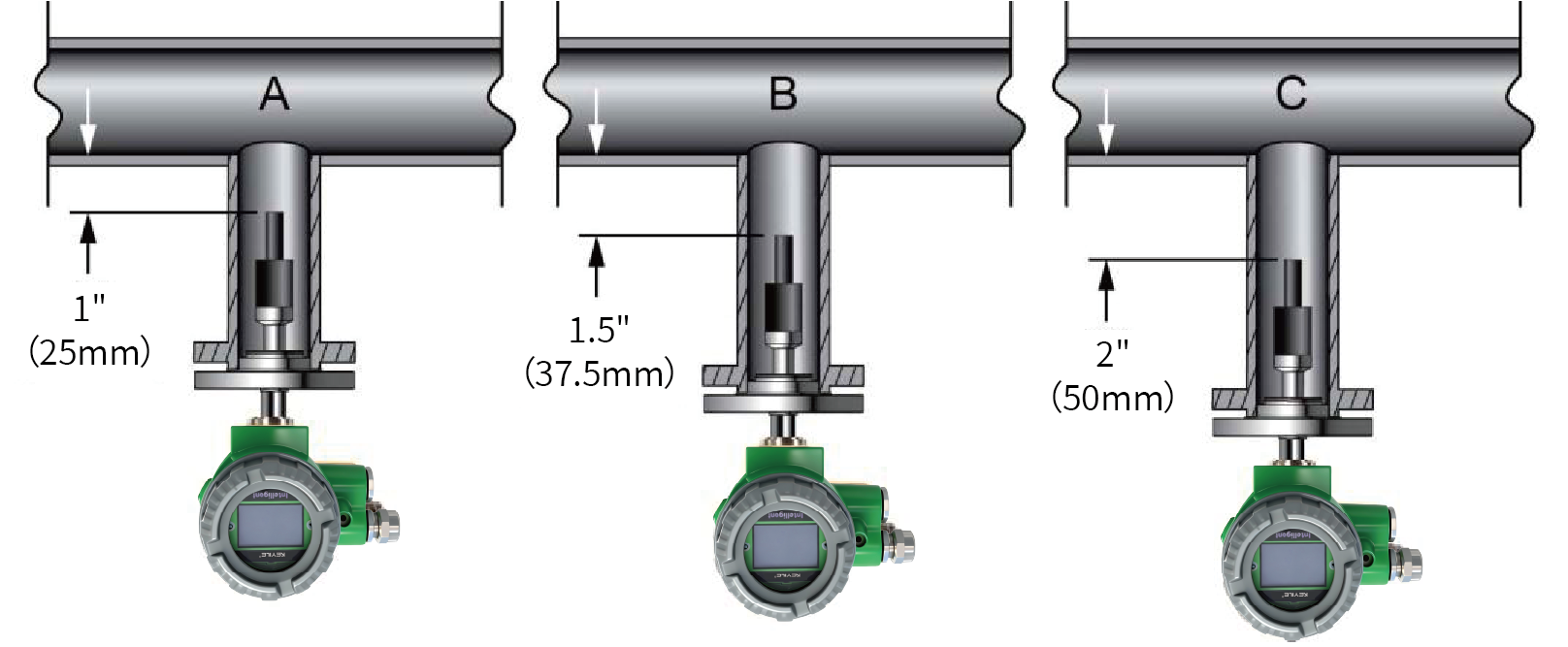 Unlike pipeline density sensors, the fork of the insertion density meter (concentration meter) is not fully enclosed.